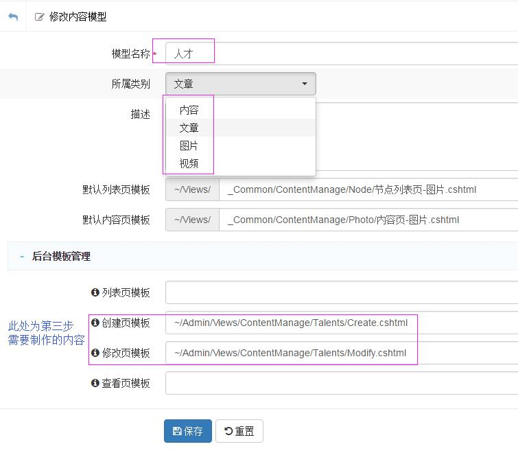 (2)创建页模板(Create.cshtml)和修改页模板(Modify.cshtml),这两个模板新内容模型的扩展字段有关!