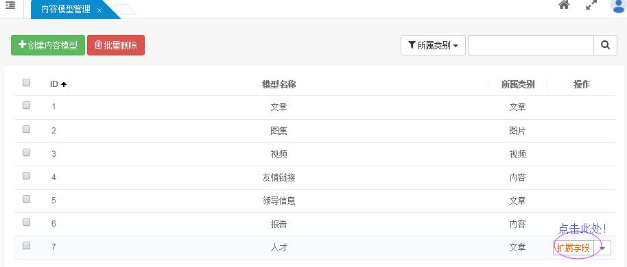 第一:创建内容模型,操作:平台管理=>内容管理设置=>内容模型管理=>创建内容模型