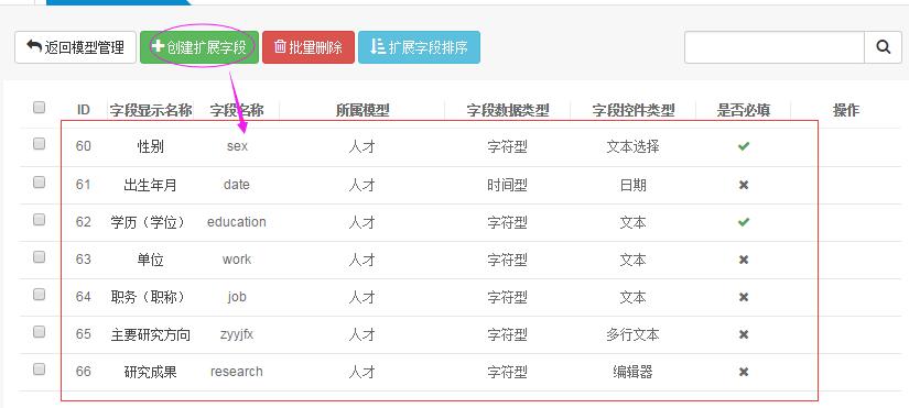 (1)从第一步中可以看出,完全定制一个内容模型要编辑新的四个后台模板(列表页模板、创建页模板、修改页模板、查看页模板),其中必须的有两个,其它次要!这也是相应增加了时间成本!如果以后手机版后台也要实现的话,也得继续新增手机版的四个后台管理模板!