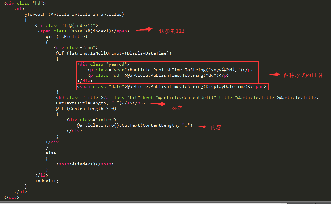 hd,里面,需要显示切换的123、标题、内容、还有两种日期;