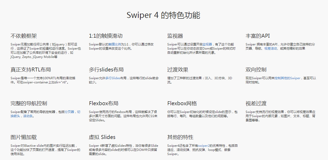 Swiper,是目前应用较广泛的移动端网页触摸内容滑动js插件。