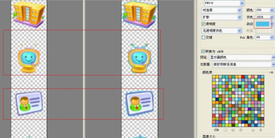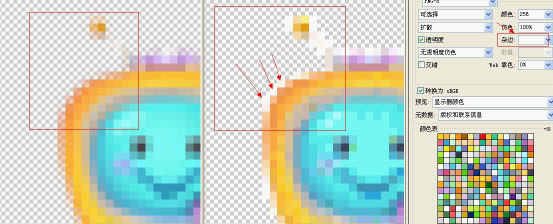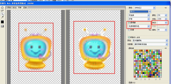 可以看见,ico出现不同程度的锯齿,回到默认压缩面板,发现注意ps默认模式下,仿色的色值是前景色或白色: