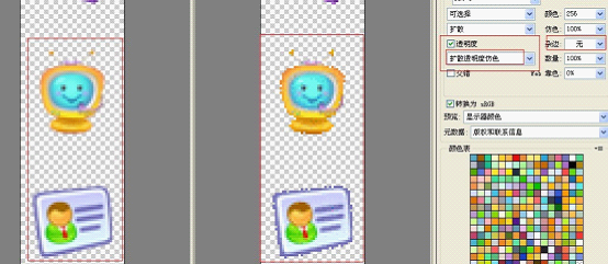 部分地方可以接受了部分还不尽人意,在返回压缩面板尝试修改扩张透明仿色效果: