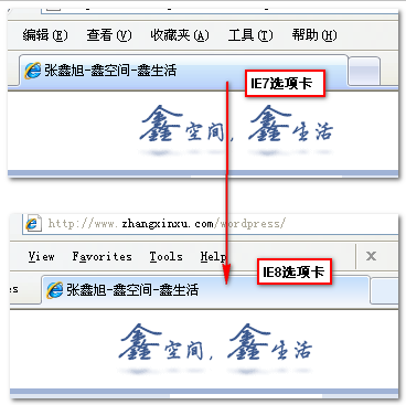 然而,没过多久,设计开始返璞归真,扁平化的设计越来越受欢迎,水晶高光效果按钮反而显得业余与俗气。从IE7→IE8的选项卡UI可见这种设计趋势的转变: