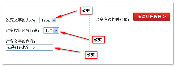 修改左侧的文字大小下拉框,或是行高下拉框,或是修改文字的内容都可以调节按钮的样式,都一个按钮,可以根据外界不同的变化依然保持良好的外在形态,这就是适应性强悍的按钮,再同等设计局限下有些更为长久的生命周期。
