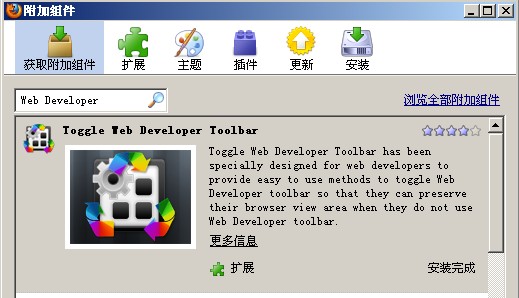 对 于DIV+CSS的XHTML开发环境,页面的调试更加的重要。我们完全手写代码,需要不断的预览所形成的页面效果。所谓Web Developer,它 是指运行在FF(指Firefox浏览器下同)环境中的插件,是目前公认为最为优秀的网页调试工具。通过web Developer浏览他人的成功作品从中汲取制作经验显得非常重要,也是我们学习的一种捷径。可以 通过火狐浏览器的附加组件功能查找并安装这一插件。