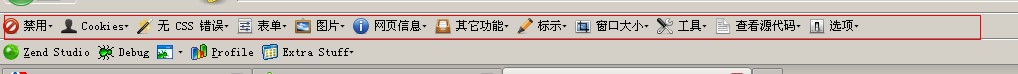 安装完成后,重新启动火狐就会出现如下图红框框住的web developer的工具栏