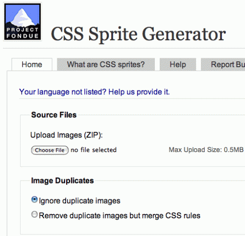 这个工具允许你上传多张图片生成CSS Sprites和CSS代码