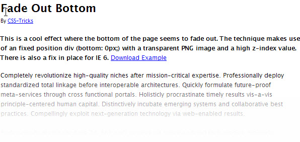 这个指导教程向你展示如何让页面内容如同 fortuito.us blog 那样在底部呈现淡出效果。