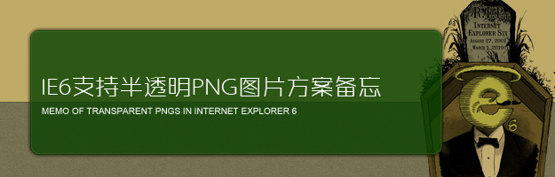 在IE6直接显示(包括内容中直接插入、作为背景图片)PNG-24格式的图片,是不能正确显示透明、半透明内容与其他内容的叠加呈现效果的。那些IE7+以及其他标准浏览器中漂亮的虚化、淡出、投影效果,在IE6-中很可能成了一坨难看的灰色。