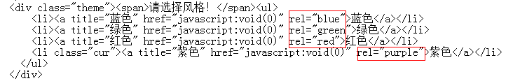 在每个页面都加上以上三点就可以实现联动换肤,最后怎么实现节点之前互不影响的换肤,只用更改第3点中末尾处(".theme li","theme2","cur")中间的theme2这个参数。