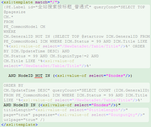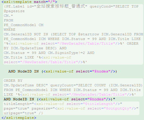 ·主站使用的“全站搜索按标题.config”也一样加入nodes新属性值(不配图了),SQL语句如图