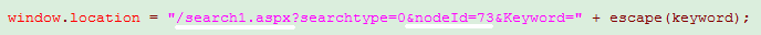·再打开搜索功能的JS代码段,修改搜索地址的传值,填写你的“子站”节点ID,如图: