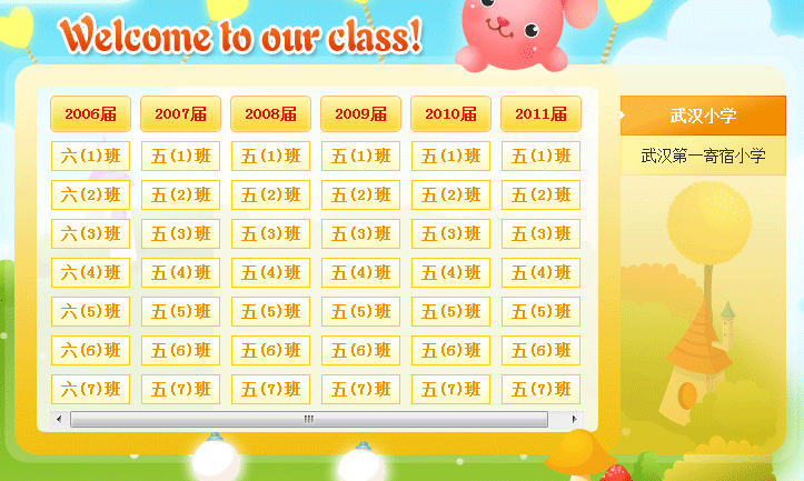 在武汉小学这个项目的班级主页上,一开始碰到了些问题。以前的思路是 #wUL1 定一个宽带,如果里面的 dl 超出了这个宽带就只显示Y轴的滚动条。效果图如下: