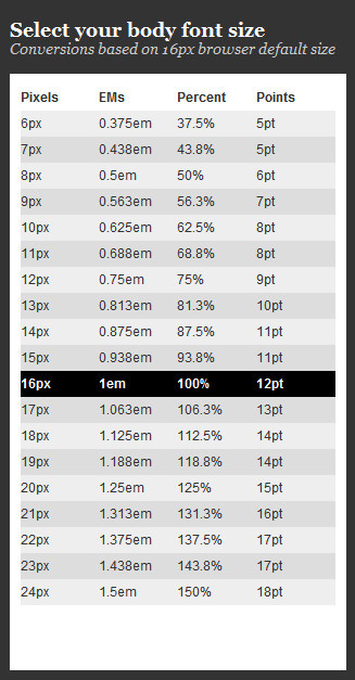 3. 重新计算那些被放大的字体的em数值。避免字体大小的重复声明。