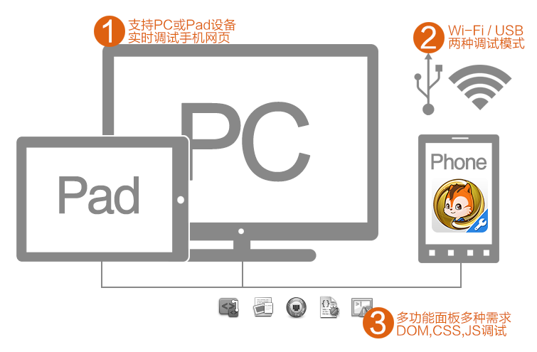 我们经常使用Firefox的firebug或者Chrome的开发人员工具进行Web调试页面,JavaScript,DOM元素和CSS样式的调试。但是,当我们为移动Web站点或应用进行调试时,这些工具就很不方便,因为不知道在手机上或者pad看到的效果是怎样的?