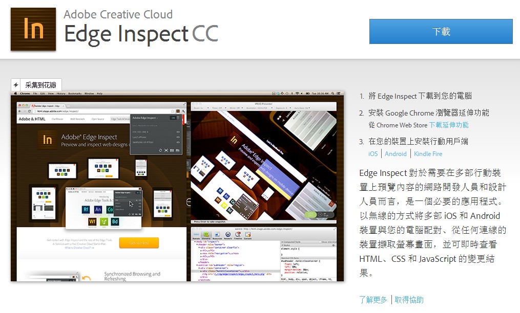 (tips:下载前要先安装Adobe Creative Cloud才能下载到Adobe Edge Inspect CC )