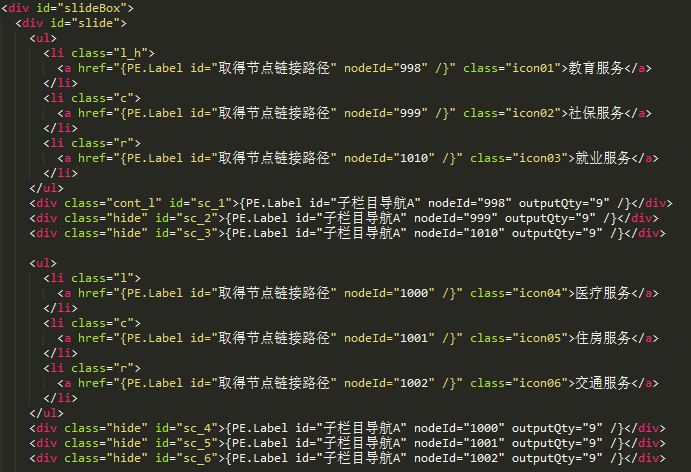 以上代码都是每行都写死对应ID,而且繁琐又不能通用!并且客户调整、新增、删除节点顺序并不能改变首页调用!会给后期维护带来麻烦!因此良心发现,必须修改!以便后期项目复用和客户操作方便,减少自身麻烦!