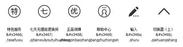 第三步:挑选相应图标并获取字体编码,应用于页面