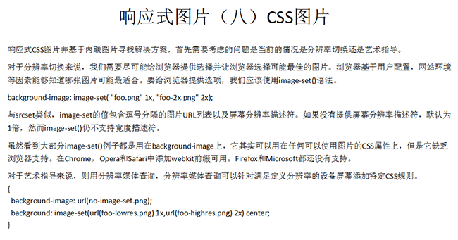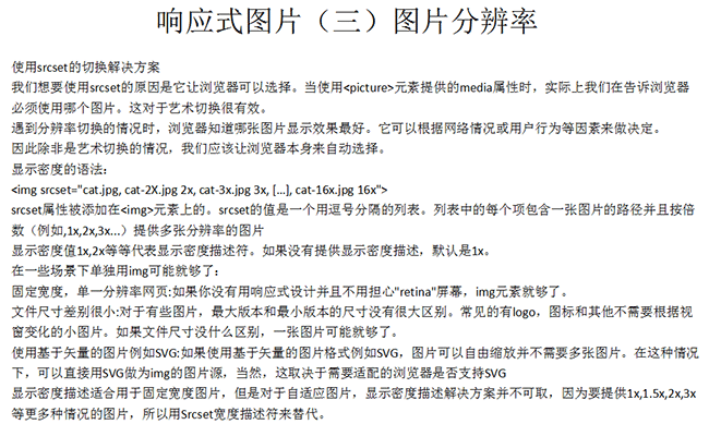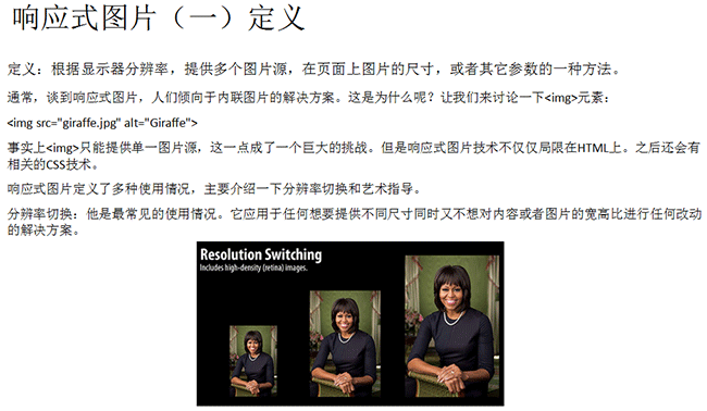 随着响应式网页设计的产生,流行,和Retina 屏幕的逐渐普及,网页中对图片的适配要求也越来越高 ,HTML5响应式图片虽然才刚刚开始,但是前景还是很美好的。