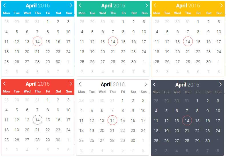 下图是flatpickr日期时间选择器的各种主题效果: