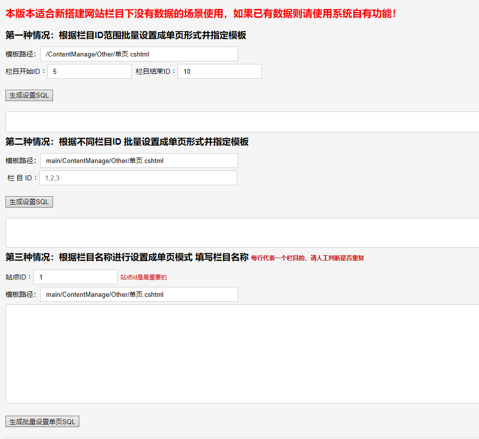 第三种:栏目不连续并分散各父栏目下时使用(使用这个需填写子站ID避免修改到其它子站)。