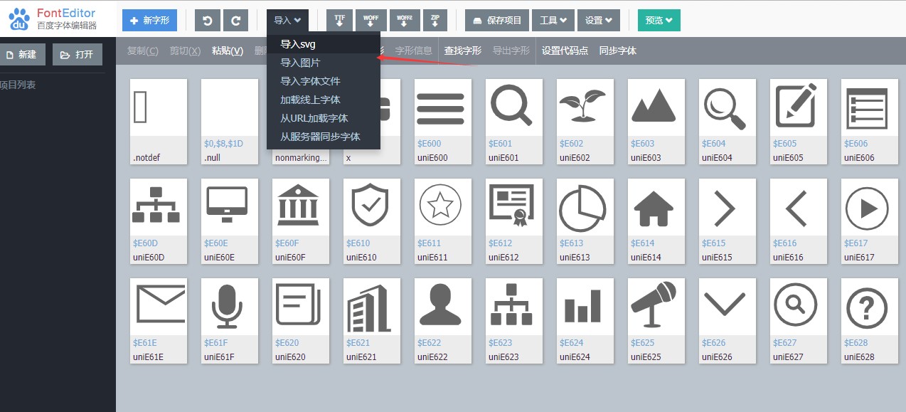 百度字体编辑器 地址: