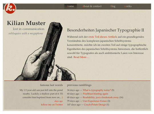 如下面一些国外比较流行的设计风格,以及前面提到的微博网站,都是通过大幅的背景图去进行意境的传达和气氛的渲染。这样做的一个好处就是能把需要用到图片的视觉元素进行集中的压缩优化,同时又不会由于加载太慢而影响用户的访问速度(前端实现时一般会用相近的背景色先进行填充,然后在逐步显示背景图)。