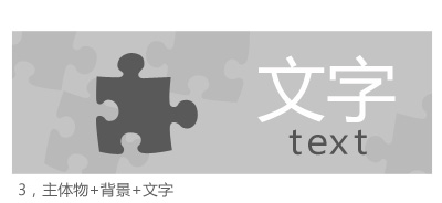 一个banner最主要的是标题,但辅助视觉起着烘托标题文字的作用,然而这也是最有难度的一个活,设计师的个人风格和变现力在这里能够淋漓表现。文字和辅助视觉的关系,我这里列举了3个常见搭配方式,这几种方式搭配分别有不同的效果,从而产生不同感觉。