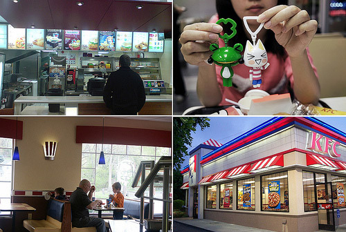 愉悦:从装修布局上,快餐店都非常的干净整洁,颜色明亮鲜艳。服务员总是那么热心,礼貌;点餐说不定还能收获个礼物。你说,你能不高兴么?