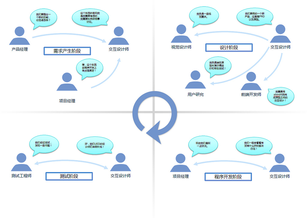 那么,我们看到,交互设计师实际上已经成为开发队伍中不可或缺且始终贯穿开发进度的核心角色: