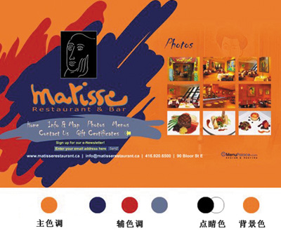 二是确定配色方案。主色调确定后,就要合理运用色彩规律,以主色调为中心,利用色彩的明度、纯度、色相三要素的变化,适当增加其他色彩作为对比色和补色,选取辅色调、点睛色、背景色等组成配色方案,和主色调一起构成有节奏韵律、和谐统一的色彩关系(见插图1)。网页配色方案要避免出现色彩单一或用色过多的现象,色彩种类最好不要超过四种。