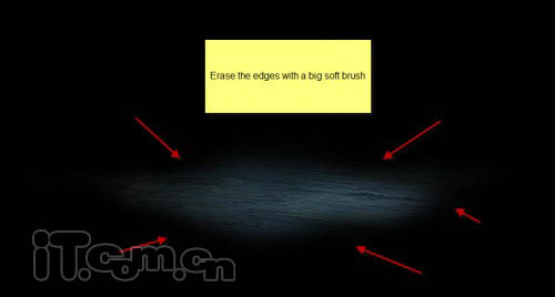 | 23、创建一个新图层命名为“倒影”,使用黑色画笔在字母下面绘画出一些倒影,参考下图所示。注意画笔的流量和不透明度可以降低一点。 |