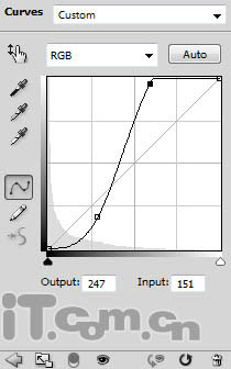 | 5、在所有图层的上面添加两个调整图层(单击图层面板下的“创建新的填充或调整图层”按钮),分别调整曲线及色阶,参数设置如下图。 |