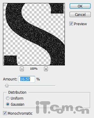 | 9、下面我们开始为文字添加一些水溅的效果。载入文字图层选区接着创建一个新图层并填充黑色,然后执行“滤镜—杂色—添加杂色”命令,如图所示。 |