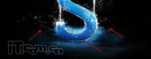 | 15、不断添加水花溅起的效果,发挥想象力在字母的头尾制作一些水流的效果,如图所示。 |