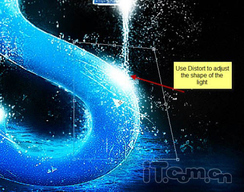 | 28、在“高光”图层中使用套索工具选择其中的一处,执行“编辑—变换—变形”,调整它的形状,使它更贴合字母的曲线。 |