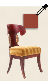我们首先用吸管在椅子上取一种颜色,然后看一下这种颜色在色轮中是处在哪一个位置上。