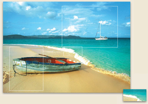 当我们一眼望去这张海滩的图片时,我们是将它看成一个整体的,或多或少会对其中的细节置若罔闻。但如果我们将各部分分离,我们会发觉,其实每一部分都隐藏着一个“故事”,都有着各自的重点。