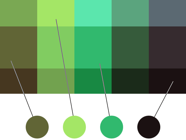 它提供给设计师15种颜色可以选择.她选择了具有一定范围和色相的4种.这些颜色与白色是对比的.