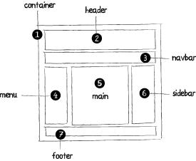 “container“ 就是将页面中的所有元素包在一起的部分,这部分还可以命名为 : “wrapper“, “wrap“, “page“.