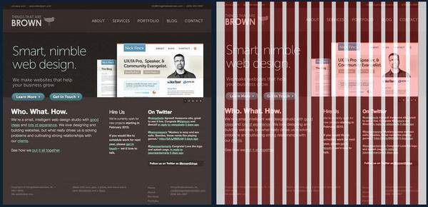 除了在样式上的借鉴,传统版式设计上的许多经典的实现手法也移植了过来,最著名的就是黄金比例和栅格系统(Grid System)。栅格系统的历史有300多年,运用严谨的几何网格来指导和规范元件的分布排列。将传统栅格移植为适合网页设计的系统,不光是创造了一种工具,也产生了一种普遍的审美规范与倾向。无论你是选择遵循规范还是打破规范,都是对它的推动。
