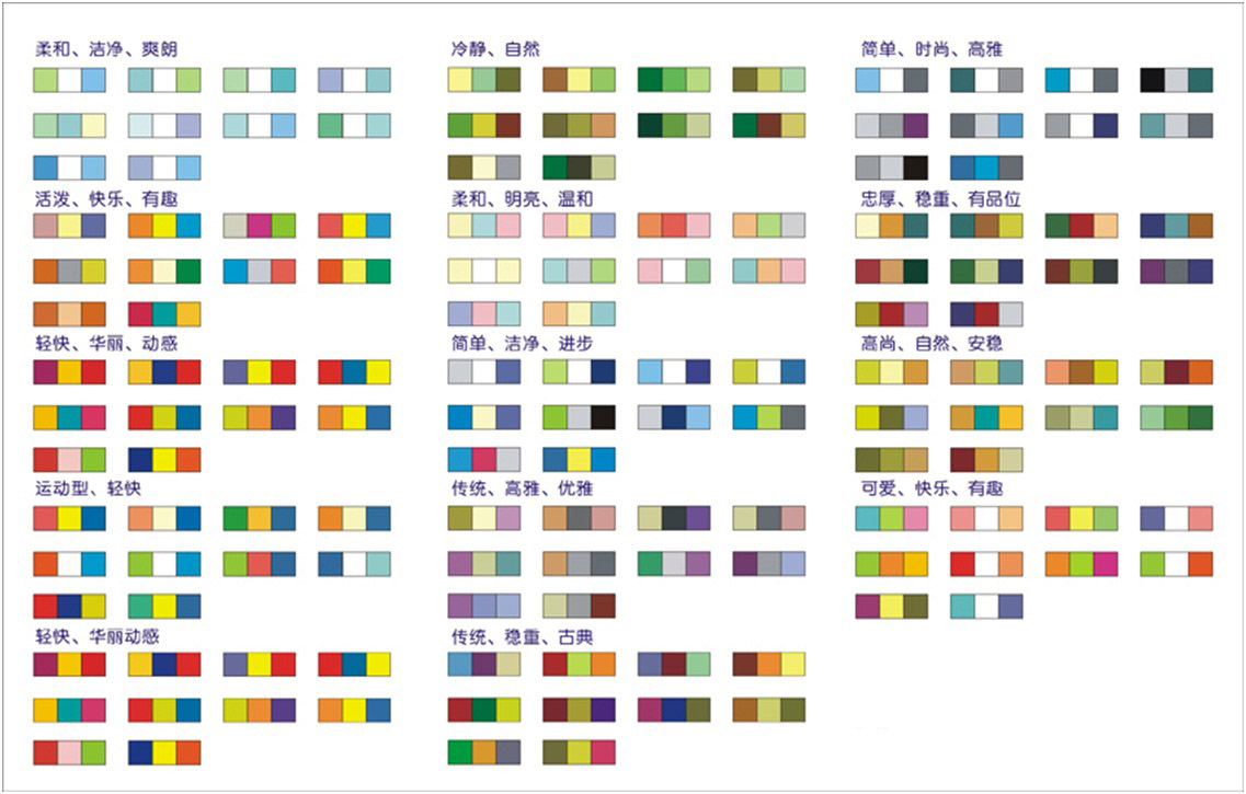 •主色调的选择由产品性格决定。色彩也是有性格和情绪的,因此会吸引不同性格的人,理解不同的情绪。在设计页面之前,经常听到有PD说我希望这个页面的风格是大气、时尚、活泼的……我想设计师一听到这些词应该马上就会在脑海里蹦出几个跟这些关键字匹配的色彩。已经有许多的视觉设计前辈,根据长期的经验和用户调研总结出了类似下图的表格,根据这些人们已认知的色彩情感,会更容易引起用户的共鸣和信赖感。因此,设计师在考虑色彩时一定要依附于产品,并注意对用户心理和文化的影响。比如口碑目前的主色调采用橙色,所代表的就是热情、活跃和热烈的感觉;