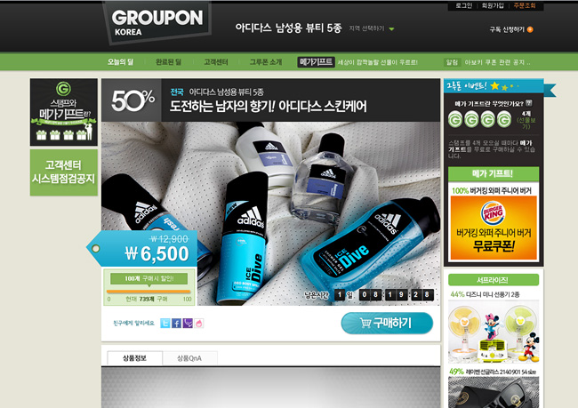 • Groupon korea的界面,沿用Groupon的风格,也比较接近中国国内的团购网站的设计趋势 。