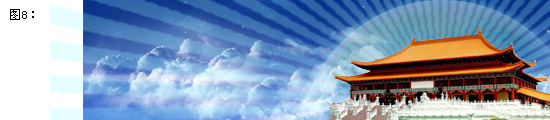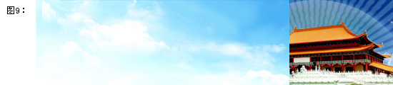 2、然后加上如图7所示的背景,得到的效果如图8。在最上层图层的左边加上一层白云图,如图9所示,现在对白云图加一个蒙板效果,在图层面板上加上如图10所示的黑白过度色,所得到的效果如图11,比刚才好多了,云的边缘有了过度,看起来柔和多了,再加上字,我们的banner图就完成了。