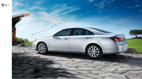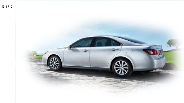 先打开如图13的一张车图,用选择工具选择一个区域,给选区羽化30象素左右,如图14,给图层加上蒙板如图15,选择蒙层,给蒙层加上滤镜--像素化--晶格化,现在我们就得到了一张边缘效果不错的图,如图16。也可以选择其它滤镜,得到自己满意的效果。