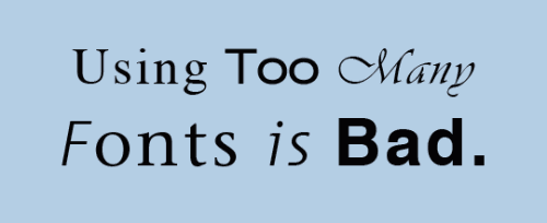 是的,我知道你刚买了一组5000个超级棒的字体,但为了你的网页设计,不要一次性全部用完。一般来说,限制自己,只用少数几种字体是个好方法,特别是对新手设计师。尽管你可以用衬线和无衬线字体混合出一种非常好看的设计,你也要知道该用在什么时候、什么地方,心里要有计划,否则,它看起来会很奇怪。