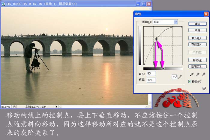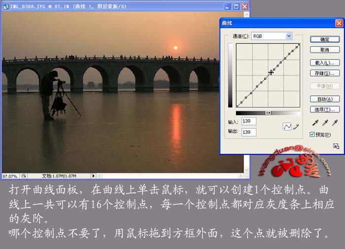 曲线也是调整图像最重要的命令之一,一幅图像在直方图正常之后,需要曲线用来对图像做精细调整。