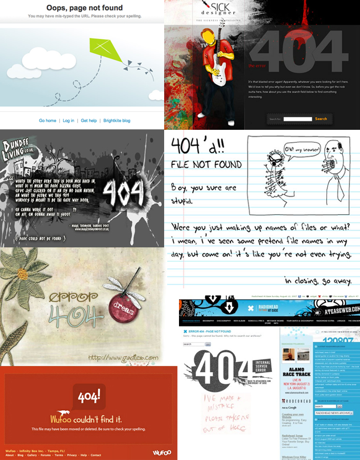 看一些例子吧,大家都知道404页面吧,最初只是显示几个字说找不到页面。久了可能大家都麻木了,也不太在意,一些富于打破常规的设计师就让错误变得美丽起来了。