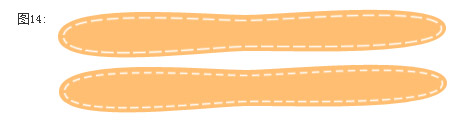 按住“ctrl”键,用鼠标点击粗虚线图层选取选区,选择实线图层,按删除,得到线状虚线,如图14上图。图14下图为粗虚线间距为300%时得到的;可见,利用间距可以画出不同线状的虚线。